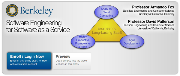 Hoy comienza una nueva edición del curso online de Berkely sobre el que estuve escribiendo tiempo atras: Software Engineering for Software as a Service. En esta ocasiónvoy a ser parte del staff del curso: puntualmente voy a estar colaborando en los foros y en el armado de los exámenes. Para esta nueva edición hay varias mejoras: nuevos videos, más ejercicios y bug fixes entre otros.
