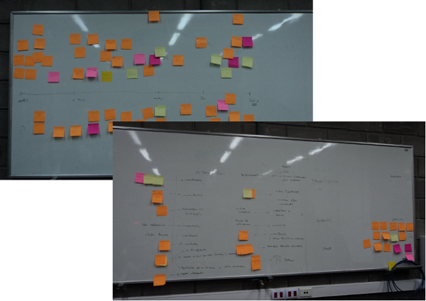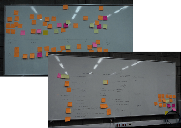 Para la retrospectiva, utilizamos la técnica del timeline, mi favorita para estos casos (cierre de cuatrimestre). Lamentablemente, solo participaron 5 de los 7 alumnos. De todos los items identificados, una cuarta parte estaba relacionada a cuestiones «de ambiente» ajenas a la materia y sobre las cuales prácticamente no tengo posibilidad de influencia (por ejemplo: fallas en la infrastructura informática de la universidad). Respecto del resto de los items, esto es lo relevante: