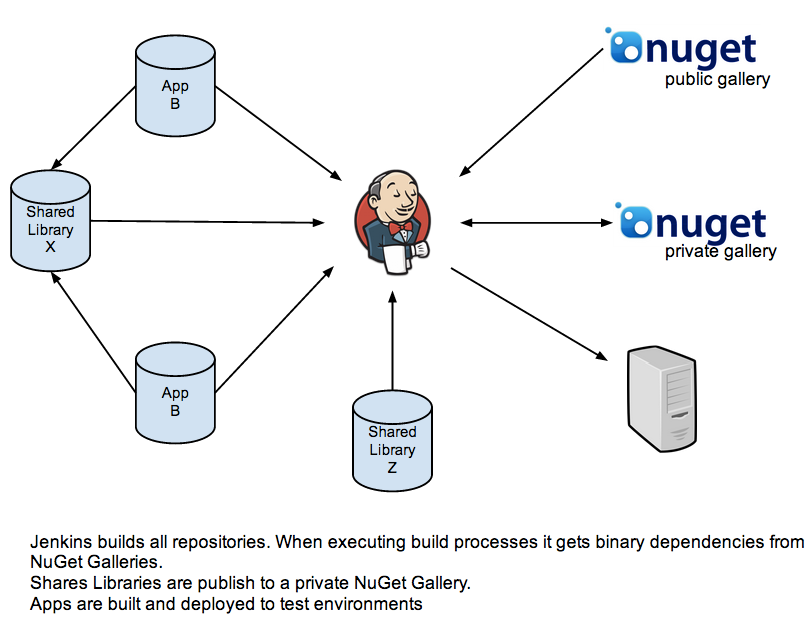- En caso de trabajar con un lenguaje compilado estáticamente (Java, C#, etc) habría que considerar utilizar un repositorio de binarios para que la aplicación se compile una única vez (algo tipo Artifactory)