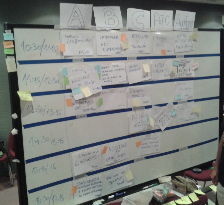 Manteniendo la tradición de años anteriores, el evento estuvo organizado en 2 dias de conferencias tradicionales y un dia de Open Space. En este sentido fue el open space más grande del que participé. Los facilitadores del mismo fueron Luis Mulato y Carlos Hurtado. Dejando de lado los keynotes, creo que en promedio las mejores sesiones estuvieron en el open space.