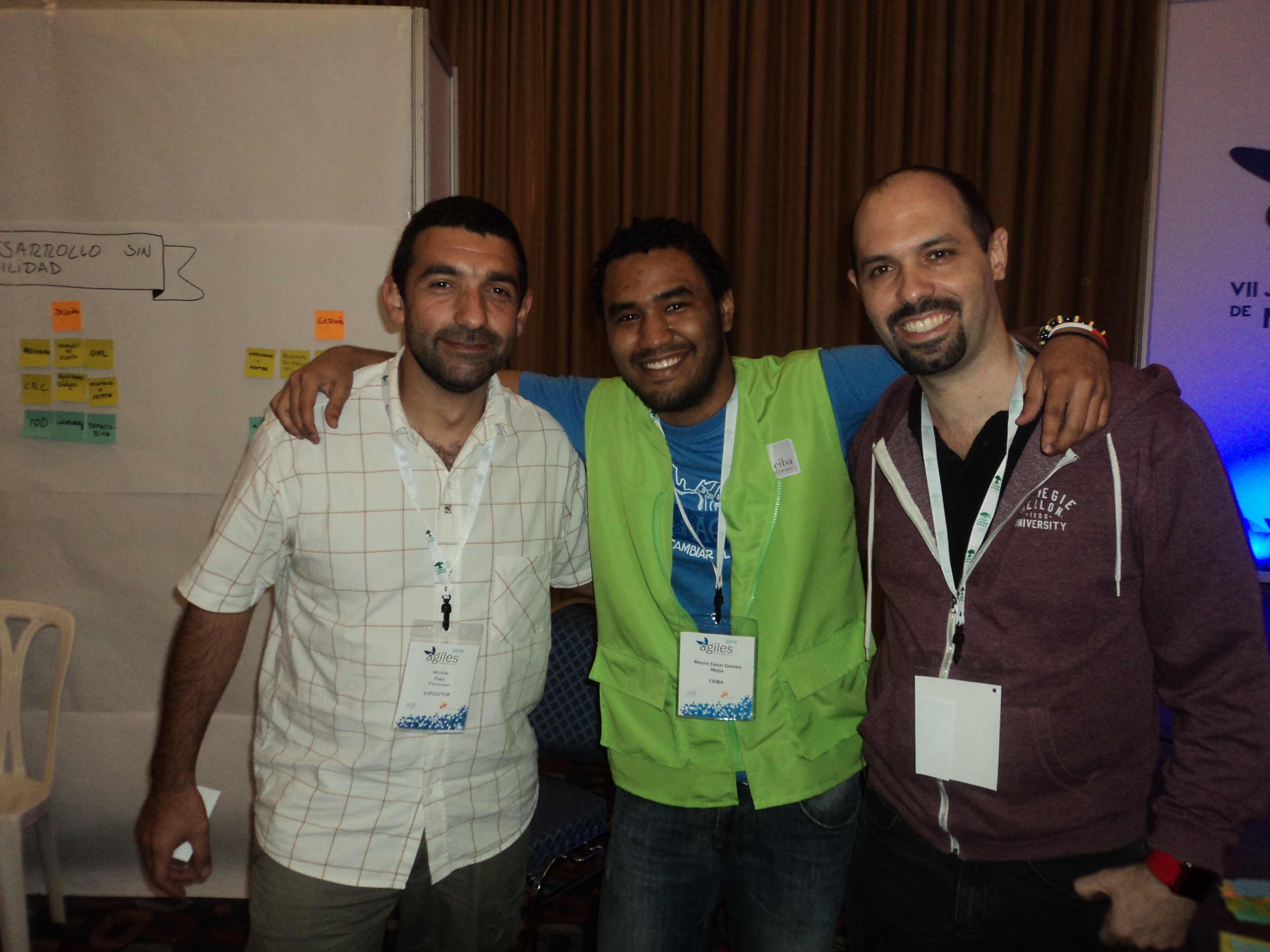 También me parece interesante destacar la heterogeneidad de roles y experiencias entre los autores. Marcio y yo tenemos claramente un perfil muy técnico y trabajamos a diario en cuestiones de código e incluso a veces de infraestructura. Alejandro y Pablo tienen un perfil más de gestión. Carlos sin duda es el de mayor experiencia profesional pero al mismo tiempo es posiblemente el más académico de todos. Diego alterna entre cuestiones de gestión de proyecto, gestión organizacional y cuestiones técnicas. Al mismo tiempo Diego y Marcio tienen espíritu emprendedor mientras que Pablo tiene mucha experiencia en ambientes corporativos. Y lo curioso de todo esto es que esta heterogeneidad no fue planificada.