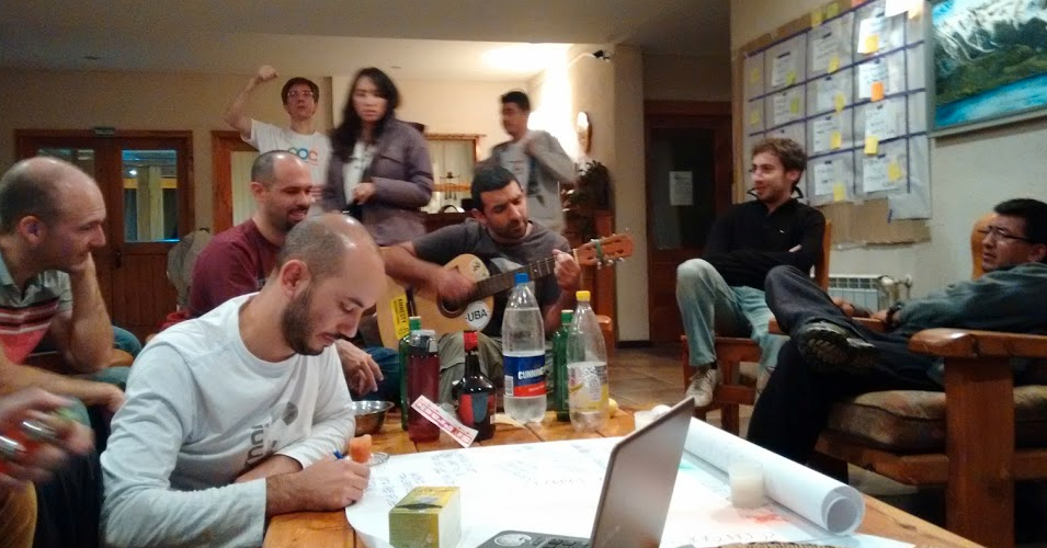 De esta forma fue que el sábado 18 en el contexto del AOC, justo antes de la cena nos sentamos a escribir la primera tanda de casos. Para el momento de la cena y en apenas 2 horas ya teníamos la primera versión cruda de 6 casos. Luego a lo largo de la semana fueron llegando más capítulos. Finalmente este último fin de semana trabajamos en la revisión/corrección y demás detalles de publicación. Para la escritura utilizamos lenguaje Markdown y trabajar coordinamos utilizamos GitHub. Finalmente para la edición, seguimos la sugerencia de Martín Salías y utilizamos la plataforma GitBook.