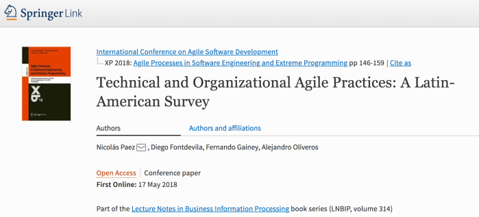 In the last slot of the journey it was our turn, me and Diego presented our research work: «Technical and Organizational Agile Practices: A Latin-American Survey«. Here are the slides of our presentation.