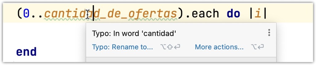 En general esta funcionalidad de «corrección ortográfica» viene configurada para inglés. Si codeamos en inglés (cosa que muchos programadores hacen) no hay problema. Pero si aplicamos Domain-Driven Design y nuestro usuario/cliente habla castellano, entonces seguramente codeemos en castellano y ahí el IDE/editor comenzará a que llamarnos la atención. Aquí tenemos básicamente dos opciones: desactivar la verificación de ortografía o configurarla correctamente. Para esto último, independientemente de cómo sea esa configuración seguramente vamos a necesitar descargar un diccionario.