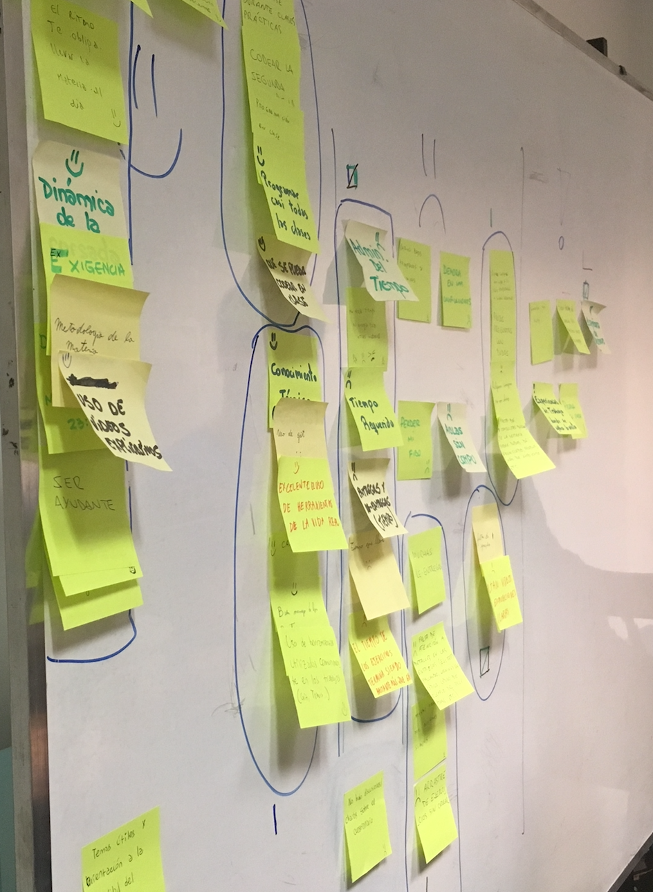 Esta semana, hicimos un retrospectiva con la intención de tener un feedback formal de los alumnos y detectar oportunidades de mejora. El feedback fue muy positivo y los alumnos destacaron el hecho de programar en clase. Entre los puntos accionables que salieron de la retrospectiva están: