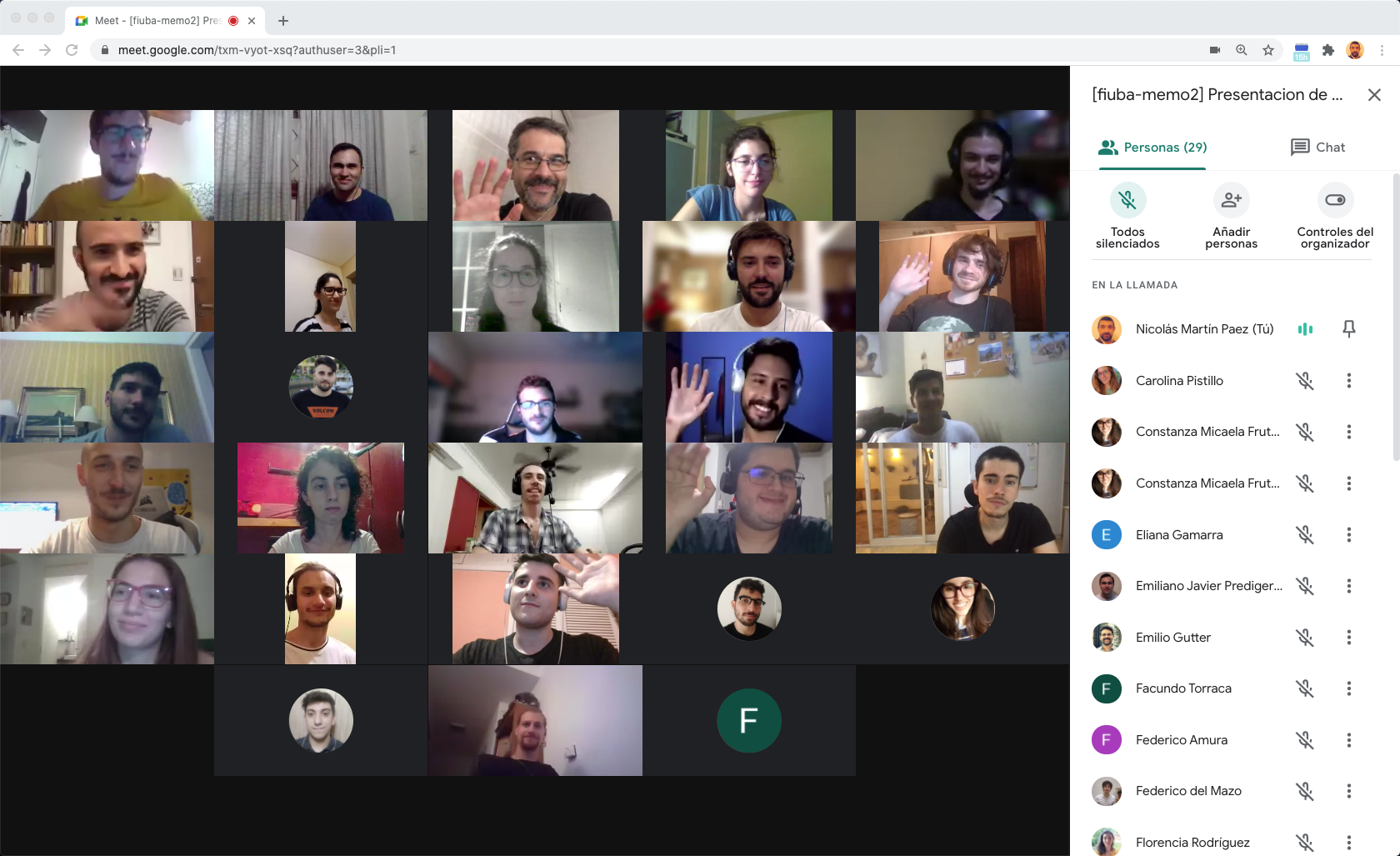 Como todos los cuatrimestre cerramos el curso con una actividad tipo retrospectiva y fue en ese actividad en la que un alumno destacó el hecho de que tratamos a los alumnos por su nombre. Claro, resulta que esta camada de alumnos es parte de la ola ingresó a la facultad a hace un par de años y que incrementó la matrícula de forma importante, como consecuencia de ello muchos de estos alumnos estuvieron en cursos multitudinarios (más de 60 alumnos) donde resulta prácticamente imposible para un docente retener el nombre de los alumnos. A esto hay que sumarle que una parte de las clases se realiza en forma virtual y la gran mayoría de los alumnos no enciende la cámara e incluso ni siquiera tiene foto de perfil. De esta forma los alumnos llegan a nuestro curso que no es tan masivo (este cuatrimestre terminamos con ~20 alumnos), donde una importante cantidad de clases son presenciales, donde les exigimos que pongan foto de perfil en todas las herramientas que utilizamos y donde los alumnos trabajan en vivo en equipos de 4, con un docente dedicado durante varias semanas. Esto habilita a que uno como docente pueda aprender el nombre de los alumnos y eso es lo que el alumno destacaba en contraposición a la gran mayoría de los cursos anteriores.